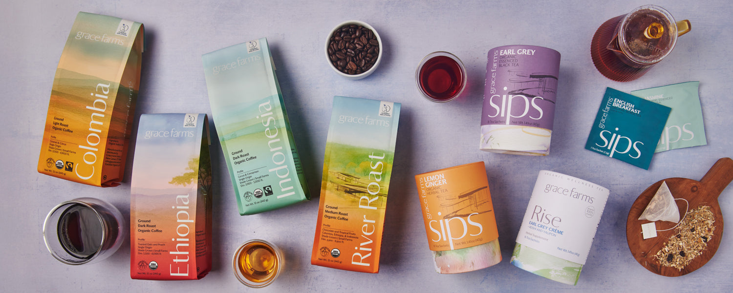 Grace Farms signature teas and coffees with exclusive pricing for workplace, wholesale and foodservice partners.