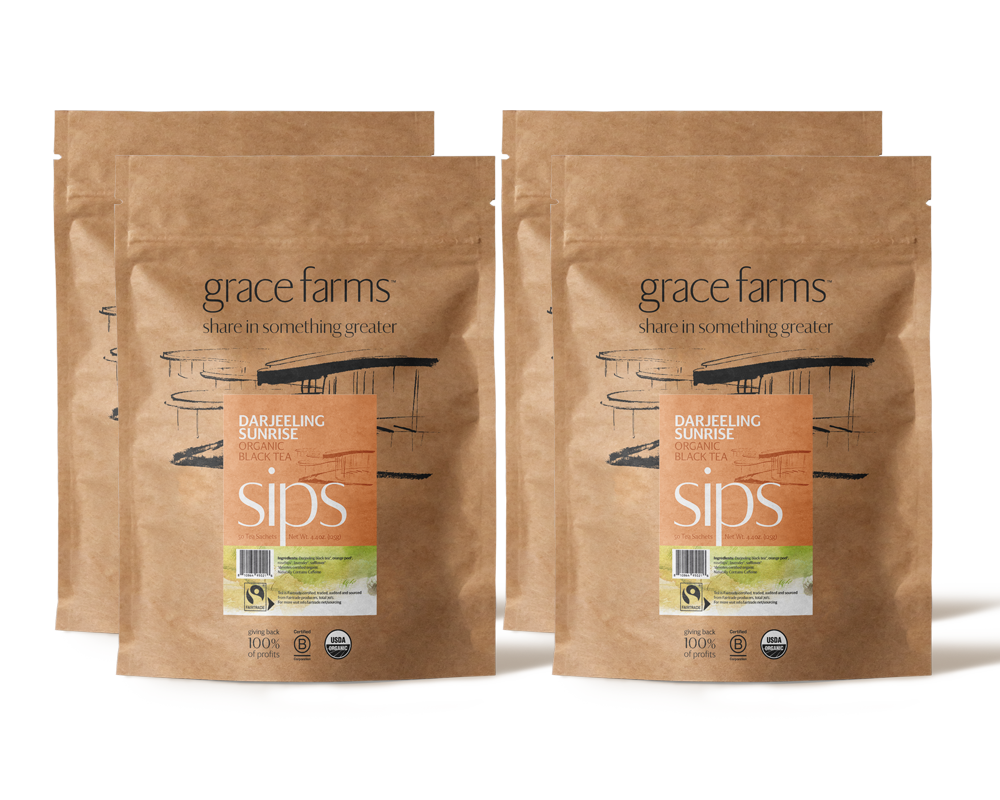 Each biodegradable and non-gmo sachet includes 2.5g of organic black tea and botanicals.