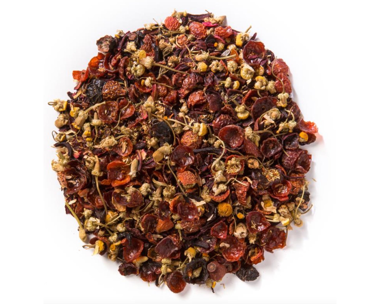 Ingredients: Organic rose hips, organic hibiscus, organic chamomile, organic rooibos, and natural flavor.