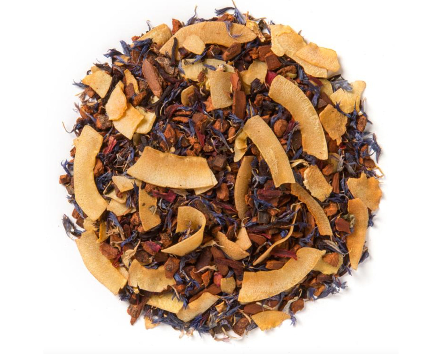 Ingredients: Organic cinnamon, organic hibiscus, organic dried coconut, organic peppermint, organic corn flowers and natural flavor.